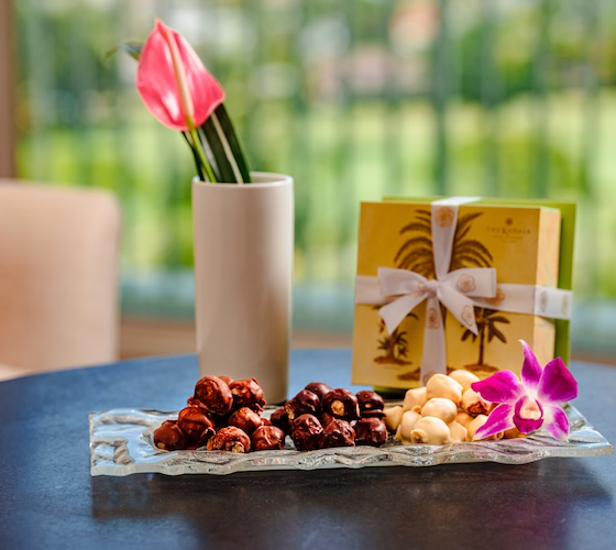 Carefully prepared by our chefs, the Chocolate Macadamia Nuts are a delectable delight. Made fresh daily, premium quality Hawaiian Macadamia Nuts are combined with the highest quality tempered chocolate. They are then packaged by hand in our custom-designed boxes and tied with a satin ribbon.ย Available individually as dark, milk, blonde or white chocolate or a selection of all four. Please also check for Limited Edition Flavor. They are sold per half pound or by pound.On Oahu, order in advance by calling +1 (808) 739-8760 or Shop Online